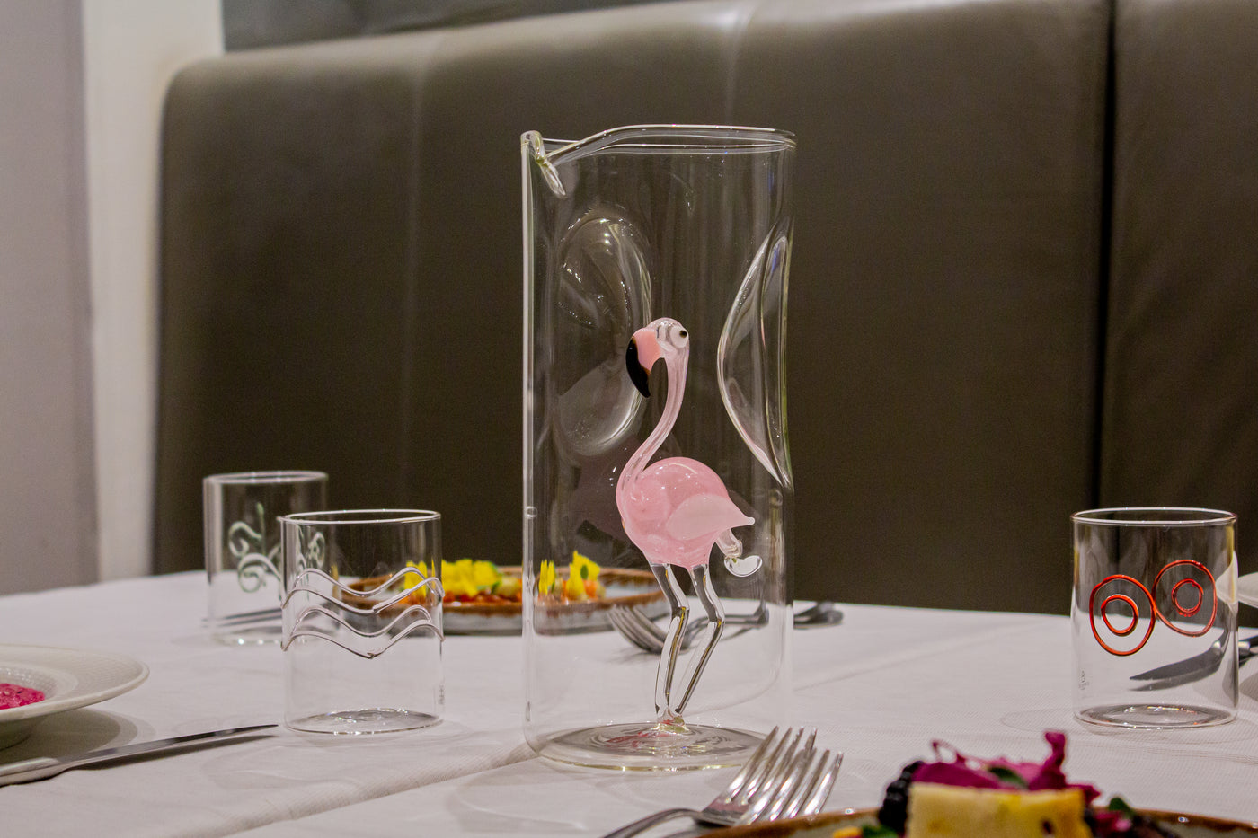 View full detailsMolly, the fish with a red mouth, stands out among the light green and pale lilac in Massimo Lunardon's wine decanter collection. Search for Moll...