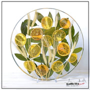 The ears of wheat, icon of Tuscany and the other Nature's element included in this pattern (sicilian oranges and bay leaves), are previously dried and then embedded inside resin; once the item will be ready, the inside elements won't have any contact with the outside, they're vacuum-sealed, so they won't go through any changes over time and the item will keep its look and colours for ever. (only orange slices, unlike all the rest of natural elements, might darken a bit over time).