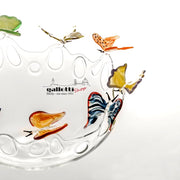 Behold the grand evolution of Massimo Lunardon's enchanting glass artistry. This larger-than-life basket, meticulously handcrafted, showcases ten vibrant butterflies seemingly lifting the delicate vessel. A harmonious blend of color, lightness, and artistry, this piece redefines elegance.