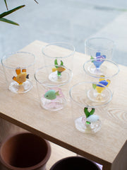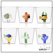 Marine garden: 6 small fish swimming in the bottom of the glass along corals that make up a complete set of fascinating and refined glasses.