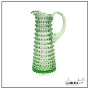 Illuminate your summer garden party or family dining table with this exquisite tall light green hobnail jug. Its modern design and practical features make it the perfect vessel for serving your favorite beverages with style and ease. The elegant tapered handle provides a comfortable grip, while the hand-shaped ice lip ensures that ice cubes stay in place and the refined opening allows for easy cleaning. Whether you're pouring refreshing lemonade or decadent cocktails, this jug is sure to elevate any occasion. Crafted from crystal glass, it can hold up to 1 litre of your favorite beverage, and it's lead-free and dishwasher safe for your convenience.
