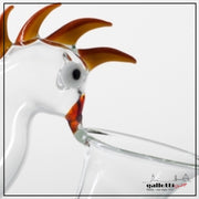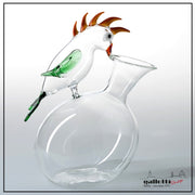This clear hand-blown glass jug has unique handle with: a parrot.