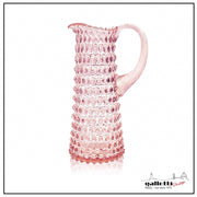 "Add a touch of warmth and romance to your dining table or garden with this exquisite rose petal pink jug. Expertly crafted in Bohemian glass, this stunning piece is adorned with handcrafted hobnail detail, lending it a unique charm. Perfect for summer drinks or as a vase for winter flowers, this jug can hold up to 1 litre of beverage. Featuring a tapered handle for comfortable grip and an ice lip to restrain wayward ice cubes, this crystal glass jug is lead-free and dishwasher safe."