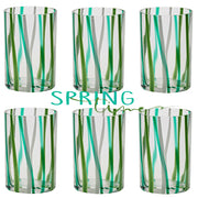 Capture the fresh, breezy essence of a meadow in spring with the Spring glass set. Handcrafted from colored glass paste, these exquisite glasses feature soft green, aquagreen, and white stripes, evoking the image of grass swaying gently in the wind. Perfect for brightening your table with a touch of natural beauty and artisanal charm.