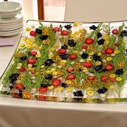 This centerpiece is made of Nature's elements embedded in a transparent material, as clear as glass but less delicate than glass: a food safe resin.