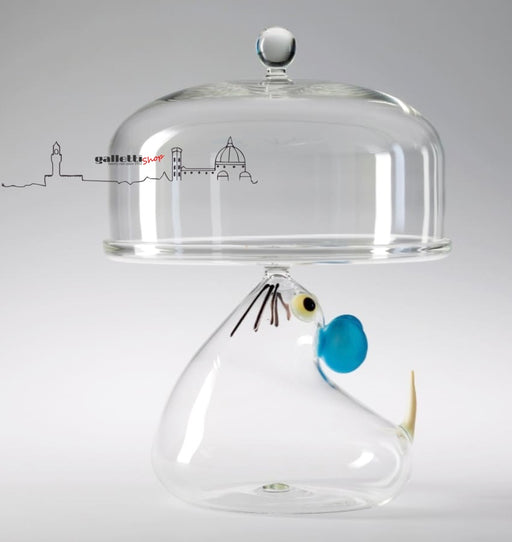 MIKEY is a playful and artistic glass cheesestand hand-blown by Italian master Massimo Lunardon. The transparent base is shaped like a whimsical mo...