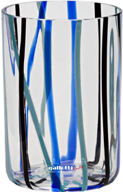 Dive into the elegance of the Ocean glass set, inspired by the vibrant energy of the sea. These handcrafted glasses feature striking aqua-blue and black stripes, evoking the dynamic beauty of ocean waves. Each piece is meticulously made from colored glass paste, combining artistry and functionality in every sip.