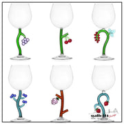 Introducing our latest innovation for savoring your favorite wine with style and originality. Six distinct stems that double as glass markers when enjoying company while standing. Six delectable fruits with six unique stems. A truly unique and original collection.