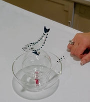 The package also contains a spoon in borosilicate glass with decorations that reflect the design.