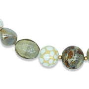 Collana Girocollo con perle in vetro di Murano e argento 925. I gioielli della linea Klee nascono dall’unione delle più disparate tecniche di lavorazione del vetro. Foglia oro, foglia argento, minerale brillante, vett... Learn more