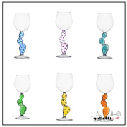 The complete set of wine glasses consisting of 6 assorted glasses with 6 different colors: green, blue, pink, light blue, yellow and amber.