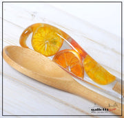 The citrus slices coming from our wonderful and sunny Sicily, are previously dried and then embedded inside resin; once the item will be ready, the inside elements won't have any contact with the outside, they're vacuum-sealed, so they won't go through any changes over time and the item will keep its look and colours for ever.