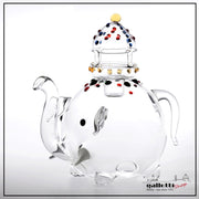 This teapot, crafted by Massimo Lunardon, features a stunning elephant shape - with its tail forming a handle and a beautiful cork headdress for decoration. Elephants are beloved symbols of luck, prosperity, and strength; they can represent wisdom, longevity, and vitality. With its trunk up, this teapot stands as a traditional sign of good luck. When you're not drinking from it, this remarkable piece is sure to draw attention and conversation.