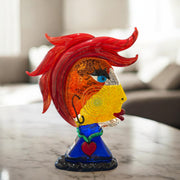 With her vibrant red hair, expressive blue eye, and a luminous face of amber and yellow glass, “Serena” embodies confidence and vitality. The deep red lips and the signature heart detail on her blue base reflect Badioli’s unmistakable touch — passionate, poetic, and full of life.